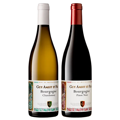 Un duo emblématique des deux grands cépages de Bourgogne : la finesse solaire du Chardonnay et l’élégance gourmande du Pinot Noir. Deux cuvées historiques de la famille Amiot — « Cuvée Flavie » en blanc et « Cuvée Simone » en rouge — réunies pour raconter nos terroirs de Chassagne et des abords de la Côte de Beaune.